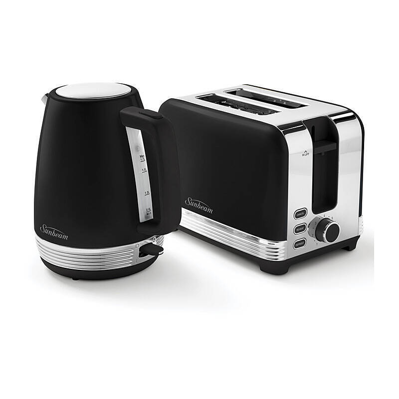 Sunbeam The Chic Breakfast Collection includes a stylish kettle and toaster matching set. One boil prepares enough water for 7 standard cups of tea. Toaster includes Defrost, Reheat & Cancel functions and choice of 7 browning settings.